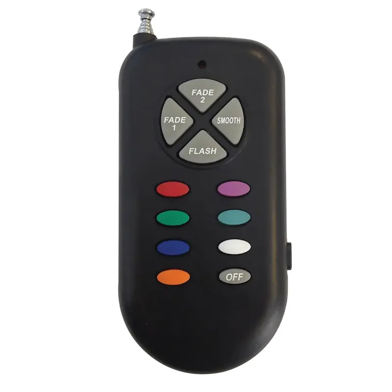 Пульт управління Aquaviva до LED лампам PAR56 (GAS) і прожекторам (для вулиці, фонтанів). Оснащений антеною ДУ. Радіус дії 10 метрів. Призначений для роботи з лампами RGB.