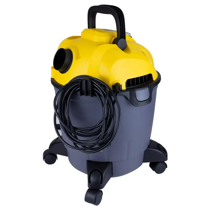 Пилосос будівельний 1200Вт 1.5м3/хв 15.5КПа пластиковий бак 18л VORTEX (5346233) спеціально призначений для збору будівельних забруднень, а також відходів деревообробки.