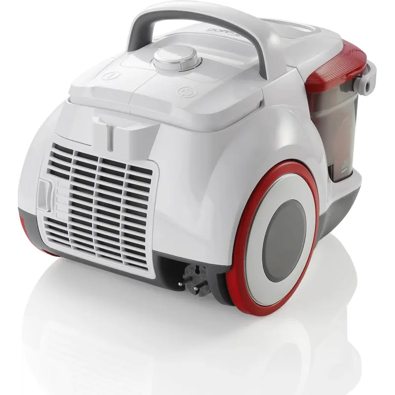 Прогумовані коліщатка Gorenje VCEB01GAWWF- пилосос з прогумованими коліщатками, які запобігають ушкодженню делікатних підлогових покриттів, наприклад, паркету і забезпечують постійний контакт з поверхнею. Пилосос не залишає слідів і подряпин на гладких і твердих поверхнях. Має 3 коліщатка. Випускний фільтр НЕРА Випускний фільтр НЕРА видаляє до 99% пилу з повітря, а також затримує пилок і продукти життєдіяльності кліщів, що дуже важливо для людей, які страждають на астму та алергію. Для додаткової ефективності на контейнері для пилу встановлено другий фільтр HEPA. Захист від перегріву Пилосос Gorenje VCEB01GAWWF з аквафільтром не вимагають мішка- пил збирається в контейнері, в який перед роботою необхідно налити воду. У процесі збирання вода затримує найдрібніші частинки пилу і розчиняє бруд, будучи своєрідним. Є захист від перегріву. Потужність підключення - 800 Вт. Фіксація труби Пилосос обладнані спеціальною кліпсою, яка дозволяє легко і зручно поставити і закріпити трубу після завершення збирання або на час паузи. Потік повітря становить 20,2 л/с. Діаметр трубки:35 мм. Телескопічна трубка- 90 см. Виготовлена трубка з алюмінію. Кнопки управління розташовані на корпусі. Автоматичне змотування шнура Ергономічний шланг і ручка з гумовим покриттям забезпечують зручність і комфорт при роботі з приладом Gorenje VCEB01GAWWF. Автоматичне змотування шнура дозволяє швидко прибрати шнур всередину пилососа після завершення збирання. Є штатним обладнанням всіх пилососів Gorenje. Клас енергоспоживання - В.
