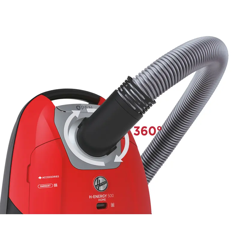 H-ENERGY 500 H-ENERGY 500 - це повнорозмірний пилосос з мішком об'ємом 3,5 л, що забезпечує чудову продуктивність збирання та продуманий дизайн для мінімізації шуму. Крім того, він оснащений зручними насадками, що зберігаються на борту. ВЕЛИКИЙ РОБОЧИЙ РАДІУС H-ENERGY 500 має шнур довжиною 6 м, так що ви можете дотягнутися далі, не зупиняючись та не відключаючи шнур.