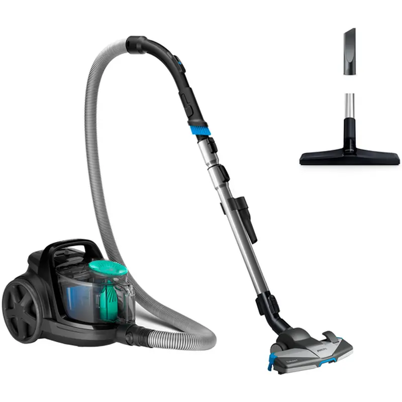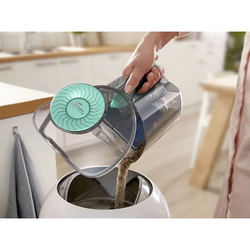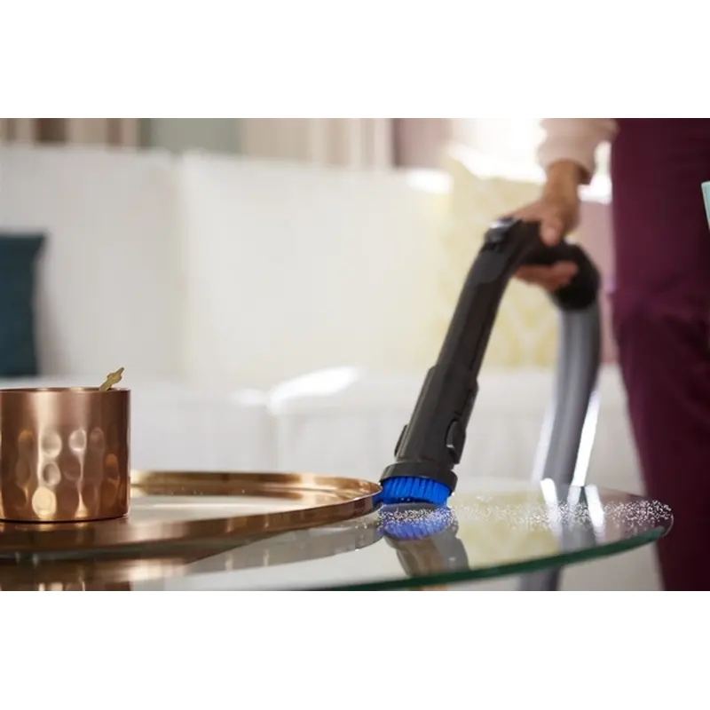 Мотор 900 Вт для високої потужності всмоктування Високопродуктивний мотор 900 Вт забезпечує більше 50 000 об/хв для стабільно потужного та ретельного прибирання. Збирає 99,9 % пилу для ефективного очищення Насадка TriActive+ і стабільно висока потужність всмоктування забезпечать збір 99,9 % дрібного пилу. PowerCyclone 7 допомагає довше підтримувати максимальну потужність всмоктування Технологія PowerCyclone 7 забезпечує аеродинамічний дизайн, знижуючи опір повітря та забезпечуючи максимальну потужність всмоктування. Надшвидкий потік повітря в циліндричній камері й унікальні вихідні пелюстки допоможуть відокремити пил від повітря. Насадки TriActive+ підходять для ефективного очищення будь-яких типів покриття для підлоги. Насадка TriActive виконує три дії одночасно. Через великий передній отвір всмоктуються великі частинки бруду та пилу, тоді як спеціальна підошва очищає від пилу килимові покриття. Повітря проходить через щітки по краях насадки, що допомагає збирати пил та бруд уздовж стін і предметів меблів. Особлива функція дозволяє керувати потужністю всмоктування Особлива функція дозволяє легко керувати потужністю всмоктування для очищення покриття для підлоги або меблів. Компактний дизайн з ручками на передній та верхній частині пристрою для зручного перенесення Компактний і легкий дизайн дозволяють зі зручністю зберігати та переносити пилосос. Конструкція оснащена ручками для зручного перенесення у верхній та передній частині. Конструкція пилозбірника призначена для гігієнічного очищення однією рукою Конструкція пилозбірника призначена для гігієнічної очистки однією рукою - тепер ви зможете забути про клуби пилу при його спустошенні. М’яка щітка, вбудована в ручку, завжди готова до використання Щітка для пилу вбудована в ручку, тому при необхідності очищення меблів та оббивки вона завжди буде під рукою. Система фільтрації Allergy H13 утримує >99,9% дрібного пилу Система фільтрації Allergy H13 затримує >99,9% частинок пилу, включаючи пилок, шерсть тварин і пилових кліщів - ідеально для людей, які страждають на алергію. Рівень фільтрації відповідає стандарту HEPA 13. М’яка вставка та гумові колеса для захисту меблів М’яка вставка та гумові колеса захистять меблі та підлогові покриття від подряпин та допоможуть з комфортом використовувати пилосос у приміщеннях дому.