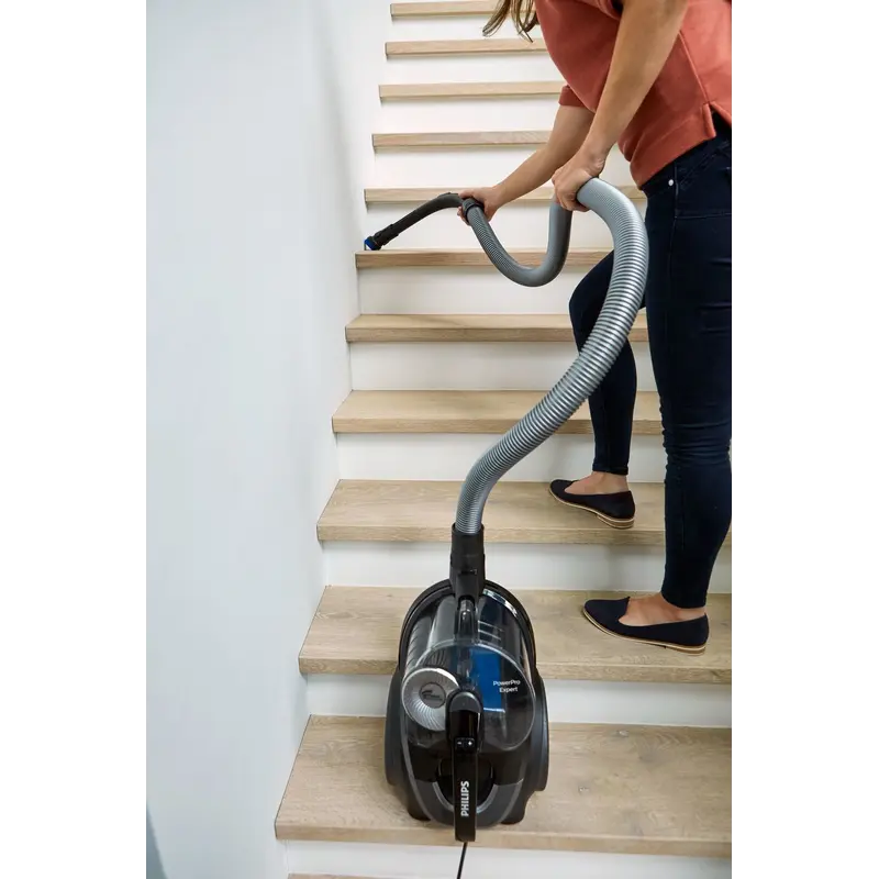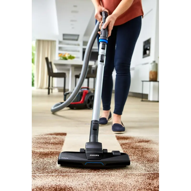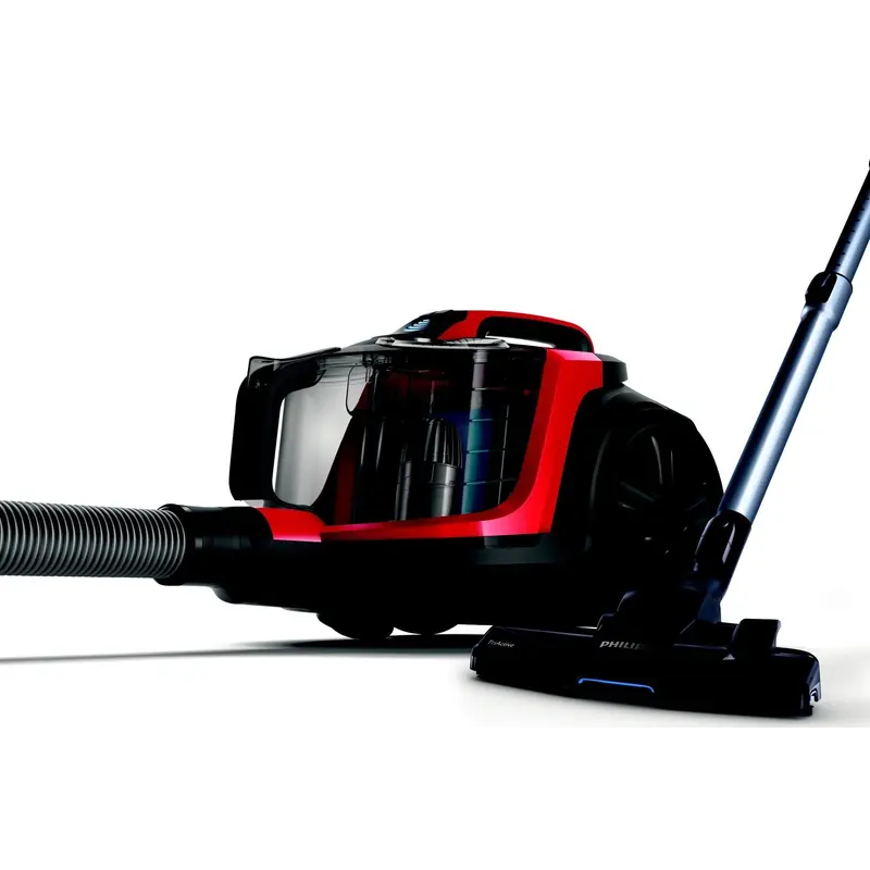 Безмішковий пилосос Philips 7000 Series забезпечує найвищу потужність всмоктування серед наших моделей. Максимально просте та ефективне прибирання з технологією PowerCyclone 8 та насадкою TriActive, яка одночасно виконує 3 особливі дії з очищення. Мотор 900 Вт для високої потужності всмоктування. Високопродуктивний мотор 900 Вт забезпечує більше 50 000 об./хв для стабільно потужного та ретельного збирання. Зареєструйте продукт на Philips.com протягом 3 місяців з дати покупки та отримайте гарантію 5 років на двигун. PowerCyclone 8 забезпечує максимальну потужність всмоктування. Технологія PowerCyclone 8 створює завихрення повітря для прискорення повітряного потоку та максимальної потужності всмоктування. Швидкий потік повітря в циліндричній камері ефективно відокремлює пил від повітря зі швидкістю >185 км/год, підтримуючи високу потужність всмоктування довгий час для бездоганного очищення. Насадка TriActive для ретельного всмоктування через 3 отвори. Насадка TriActive виконує три дії одночасно. Спеціальна підошва очищає від пилу килимові покриття, у той час як через велике переднє отвір всмоктуються великі частинки бруду та пилу. Повітря проходить через щітки по краях насадки, що допомагає збирати пил та бруд вздовж стін та предметів меблів.
