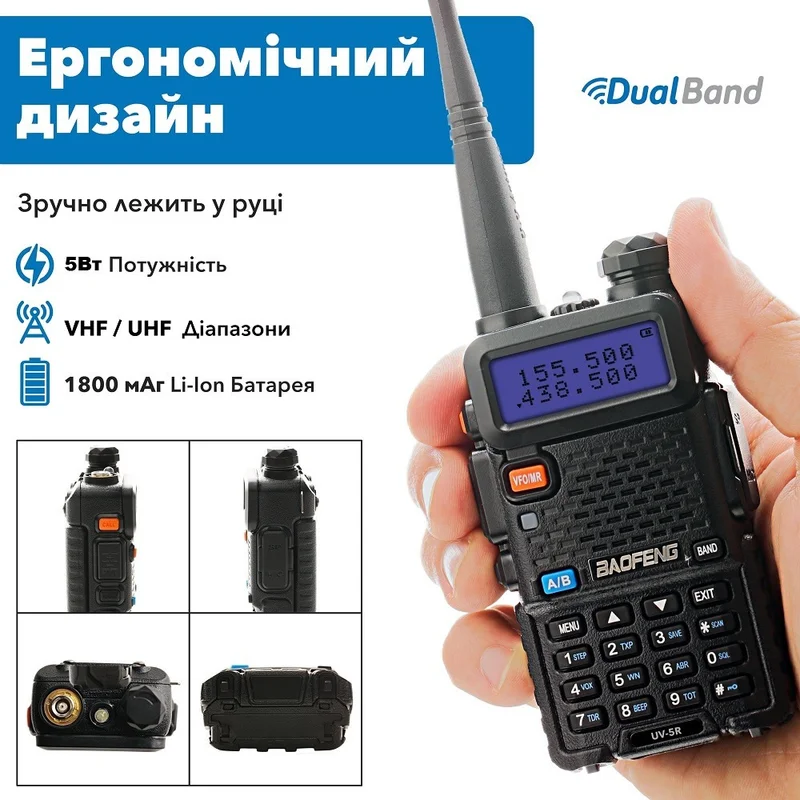 Рация Baofeng UV-5R MK3 5W Li-ion 1800 мА-ч UHF/VHF + Ремешок для рации Mirkit