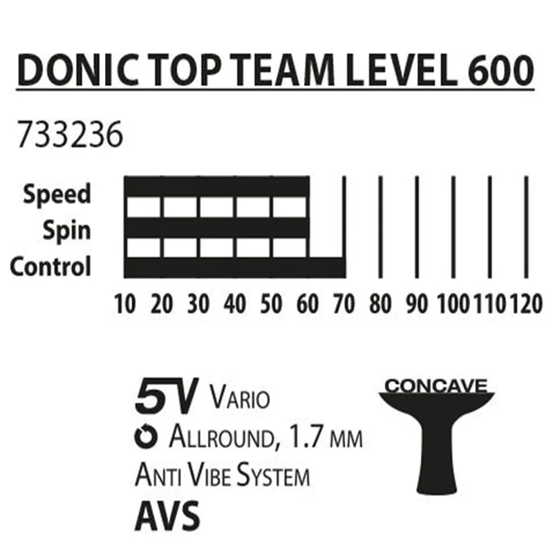 Теннисная ракетка Donic Top Team 600 - универсальная теннисная ракетка для продвинутых игроков, позволяющая оттачивать мастерство как в атаке, так и в защите, высокие показатели скорости и контроля. Ракетка оптимально совмещает: чувство контроля и силу удара при мощном вращении. Прекрасно подходит для опытных игроков с разносторонней игрой.