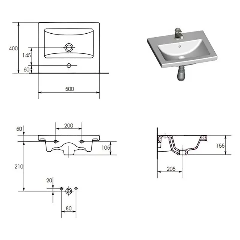 Раковина COMO 50см, з/о, меблева Cersanit