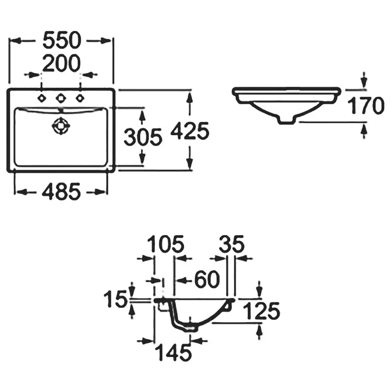 Раковина DIVERTA, 55 см, з/о,вбудована, в стільницю ROCA