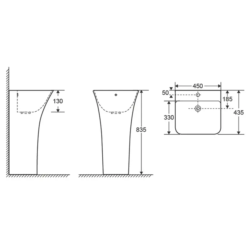 Раковина моноблок Mixxus BEVEL-1101 с отверстием под смеситель и переливом 450х435х835mm (MI6697)
