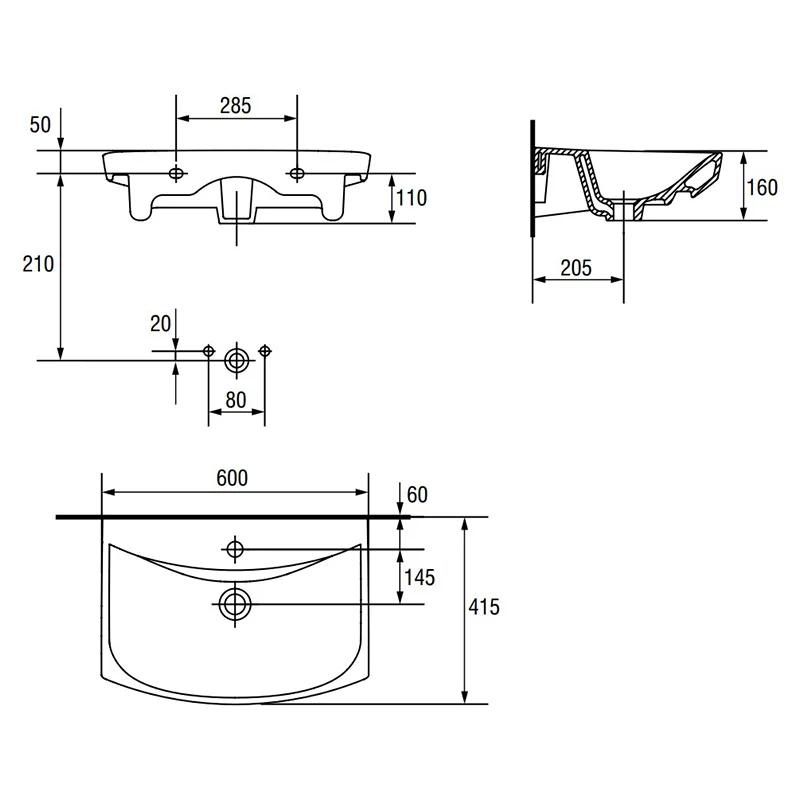 Раковина CARINA 60см, з/о Cersanit