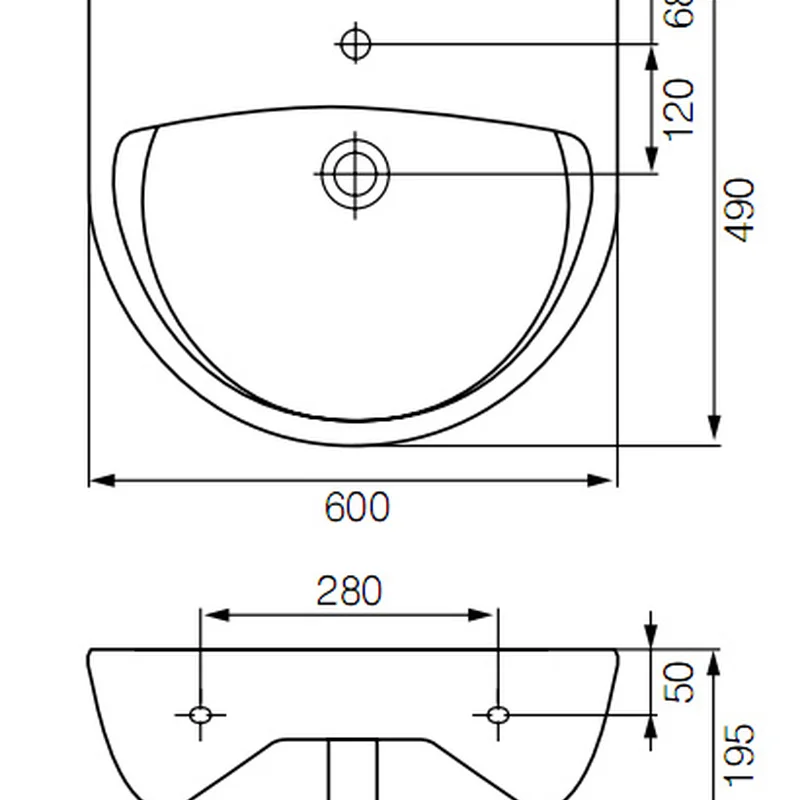 Раковина CERSANIT PRESIDENT 60см, з отвором
