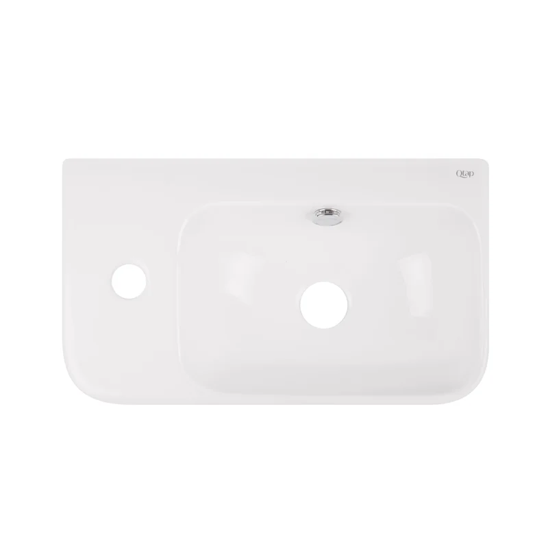 Раковина Qtap Tern QT17115117LWN має ергономічну форму, виконана з якісної кераміки білого кольору з отворами для змішувача та переливу. Вона встановлюється на стіну за допомогою кріплень, що входять до комплектації. Виріб підходить для використання із врізним змішувачем. Сифон купується окремо.