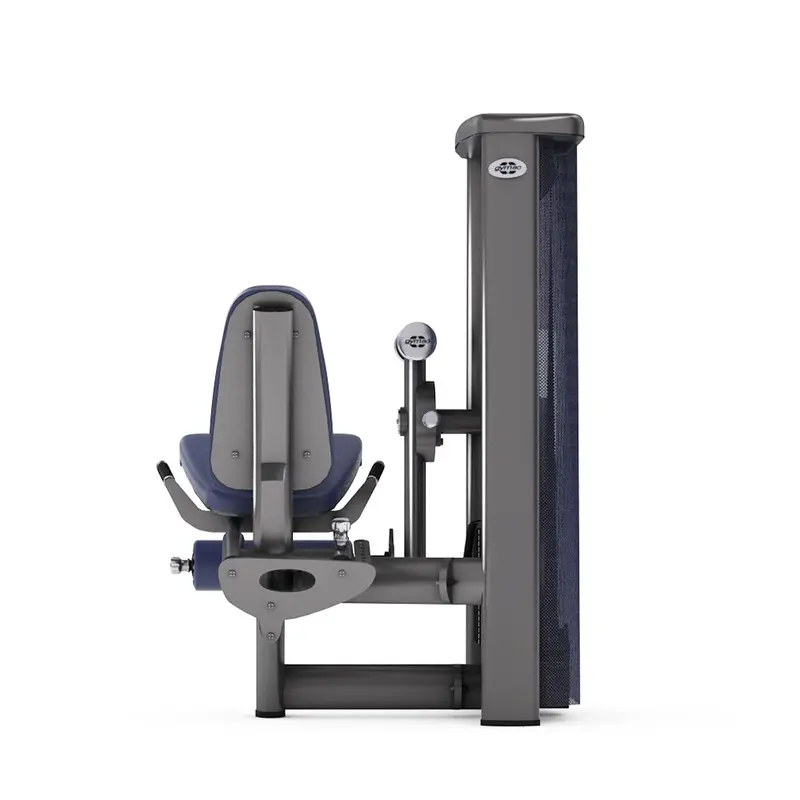 Тренажер для безопасной и эффективной тренировки квадрицепсов с помощью различных вариантов регулировки спинки и валика для ног, что обеспечивает оптимальную биомеханику.
