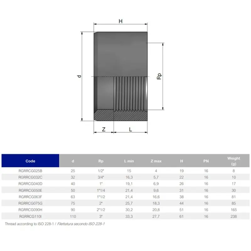 Редукційне кільце Effast RGRRCG032C з різьбою з непластифікованого полівінілхлориду PVC-U. Виробництво Італія.Вироби з ПВХ підходять для транспортування рідин з максимальною температурою до 60°C. При збільшенні температури робочої рідини граничний тиск знижується.