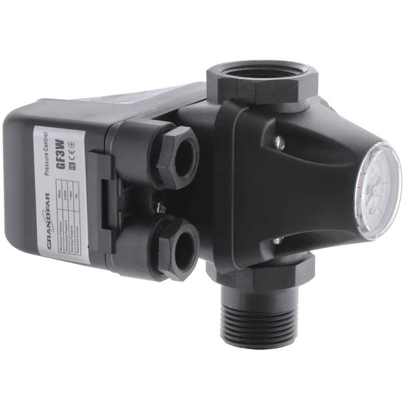 Реле тиску механіч. GRANDFAR GF3W в зборі з манометром і пятіходовим штуцером (GF1383)
