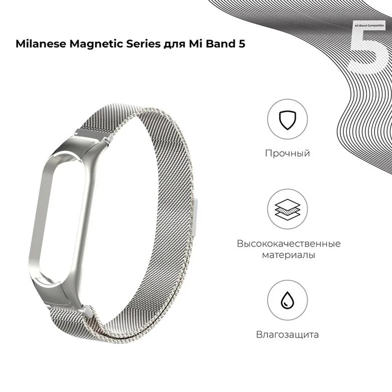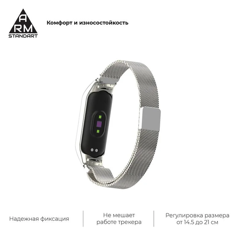Ремінець Armorstandart Milanese Magnetic Band 503 для Xiaomi Mi Band 5/Mi Band 6 Silver (ARM57180)