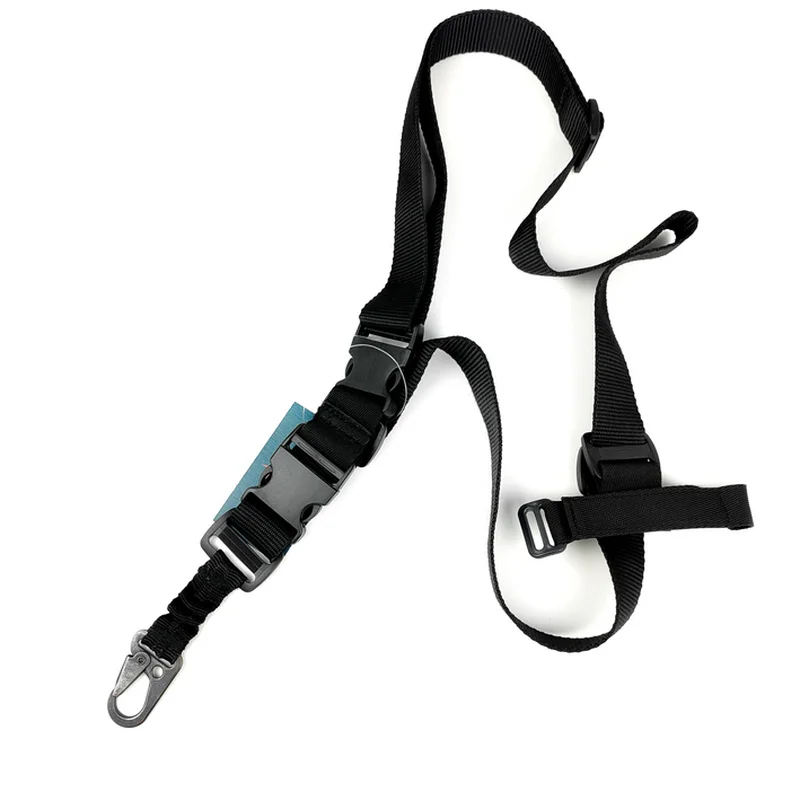 Трехточечный тактический военный ремень из усиленной ременной ленты шириной 4 см надежно фиксирует оружие. С одного конца ремень крепится к оружию большим металлическим карабином, с другой – универсальный держатель на липучке. Вес – 150 г. Цвет – черный. Благодаря регуляции пряжками ремень подходит на любой размер. Большие фастексы позволяют сбросить оружие отдельно или вместе с ремнем даже в полной темноте. Прорезиненная лента у карабина уменьшает тряски оружие при быстром перемещении по местности. Произведено в Украине.