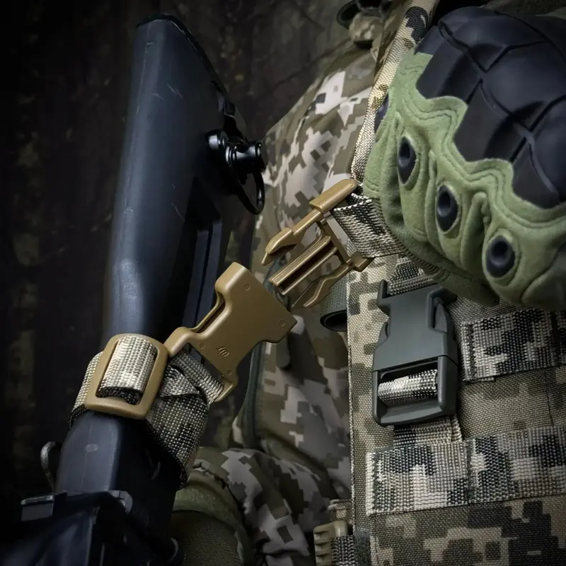 Мы объединили в этом ремне функциональность и надежность. Дополнительная фиксирующая пряжка, которая стопорит основной фастекс - поможет контролировать оружие в одноточечном положении и не пережимать грудную клетку.