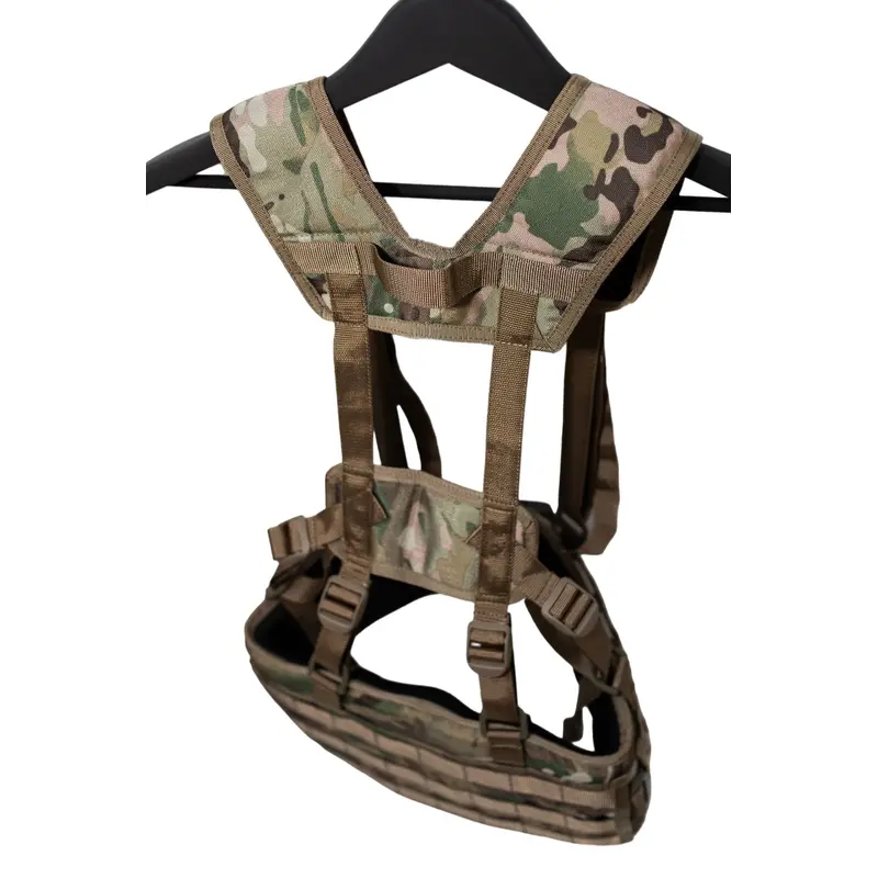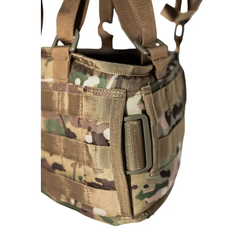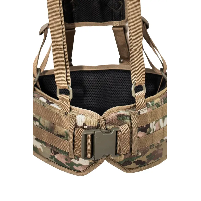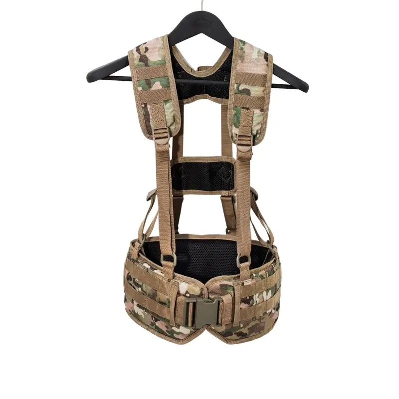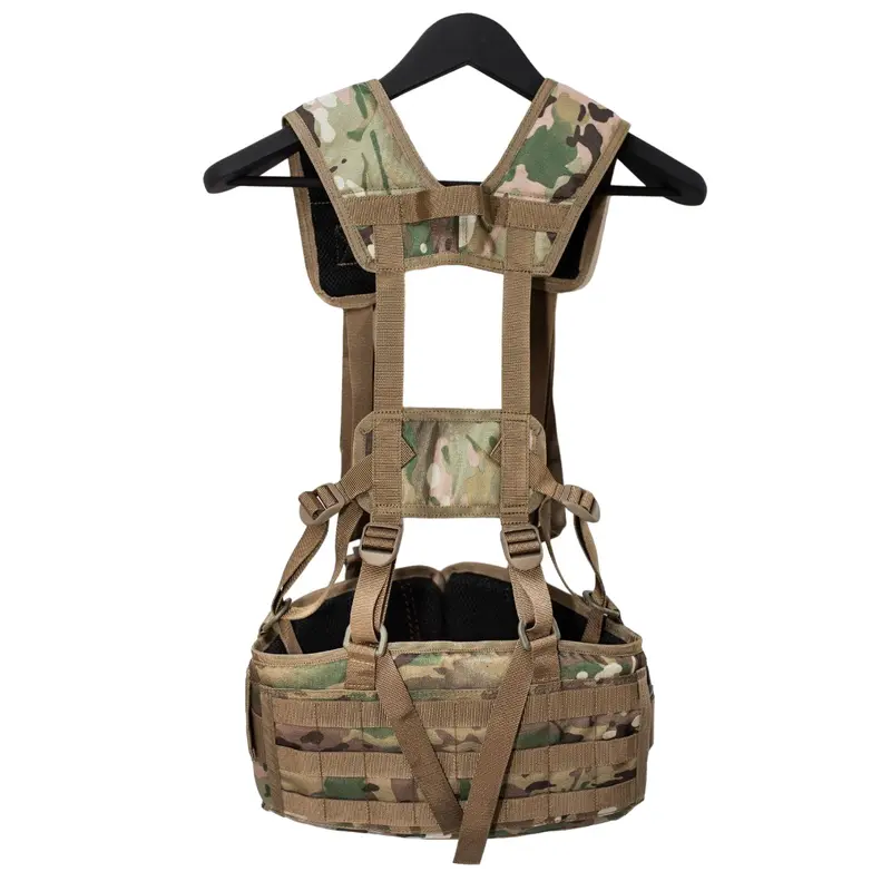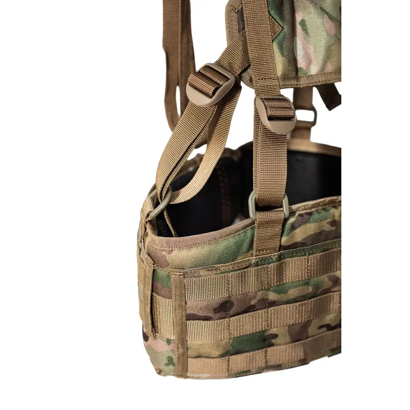 Характеристики: Тип снаряжения: разгрузочная система Система крепления: стропы MOLLE по всей поверхности Размерная сетка: M: 86-96 см (18 ячеек MOLLE) XL: 106-116 см (22 ячейки MOLLE) Особенности: Полукольца для фиксации к плечевому ремню 3D-сетка для вентиляции по периметру Отверстия справа и слева для крепления к поясу подсумков с креплением на ремень, например, аптечки Внутренний карман для мягкой вставки на липучке Материалы: Cordura 1000D с покрытием PU Липучка: Velcro Плотная полиамидная стропа Цвет: мультикам (цвет может изменяться в зависимости от наличия ткани)