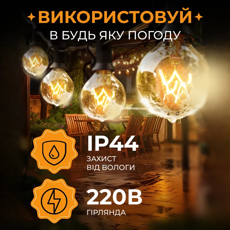 Ретро гірлянда вулична 75 лампочок 22.5 метрів жовта