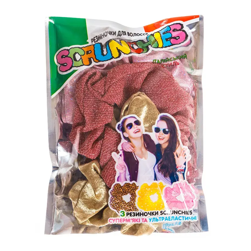 Сяяти завжди та скрізь разом із набором SCRUNCHIES від SHOKKY BANDZ!Яскрава блискуча тканина та мега еластична резиночка - це суперм'який та суперстильний аксесуар для волосся від SHOKKY BANDZ.Три резиночки дозволять підібрати тобі образ під настрій чи одяг, а блискуча тканина створить ілюзію сяйва зірок у твоєму волоссі.Не бійся бути справжньою зіркою, вибирай модні аксесуари для себе чи подружки.