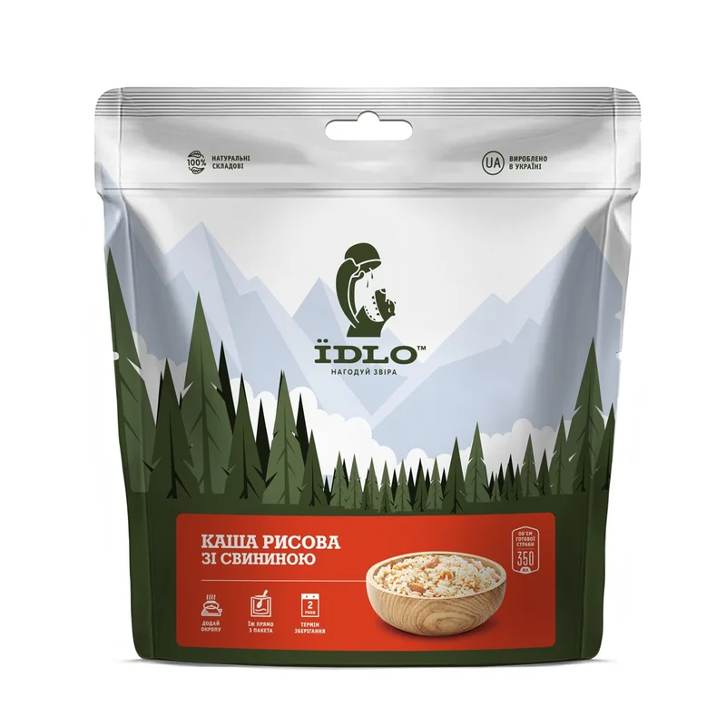Ти любиш рис, як любимо Його ми? Зі згущеним молоком, з цукром, варенням... Але найбільше в поході підходить рис з м'ясом! Приправлений цибулею, морквою і підсолений за смаком. Повір, ця страва завжди буде до речі - і на сніданок, і особливо на вечерю, коли після значних навантажень і вражень всього за лічені хвилини перед тобою виникне розкішна туристична їжа, а не незрозуміла клейковина. Крім гастрономічного задоволення ця туристична їжа дарує ще й чисто естетичну насолоду: термо-упаковка з зіпером допомагає зберегти тепло, замінює посуд, піклується про навколишнє середовище. Особливо підійде тим, хто любить забувати тарілку будинку. І не забувай: у нас всі інгредієнти натуральні, а калорії реальні.
