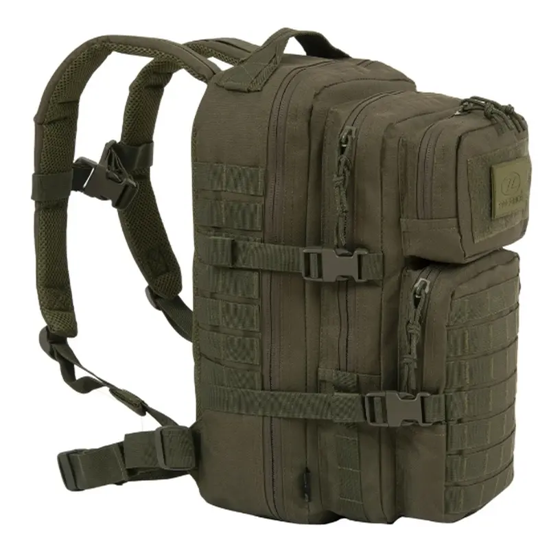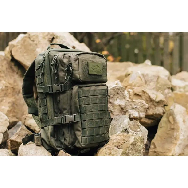 Highlander Recon Backpack 28L Olive (TT167-OG) – компактный и легкий рюкзак для кратковременных выходов. Модель изготовлена из прочного водостойкого полиэстера 600D XTP, имеет систему креплений MOLLE и четыре отдельных отсека на молниях для хранения снаряжения в полевых условиях. Вентилируемая спинка Airmesh, компрессионные ремни и усиленная ручка делают этот рюкзак компактным и удобным для ношения. Регулируемые лямки с мягкими подкладками и регулируемый поясной ремень распределяют нагрузку, чтобы обеспечить комфорт во время ежедневного пользования. Все это гарантирует, что этот рюкзак выдержит длительную эксплуатацию.