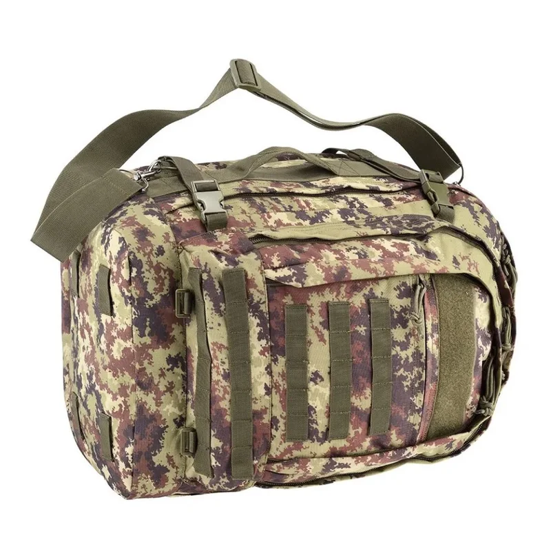 М'які анатомічні лямки, пояс на стегнах і грудна стяжка дозволяють правильно розподілити навантаження і забезпечують комфорт під час тривалих походів. При необхідності шлейки ховаються в спеціальну кишеньку і рюкзак перетворюється на наплічну сумку. Передбачено багато відділень для речей. На титульній стороні розміщено модульну систему MOLLE, яка дозволяє кріпити підсумки (докуповуються окремо). М'які накладки на лямках обшиті матеріалом повітропроникним. При зручності перенесення рюкзака-сумки в руках у верхній та бічній частині передбачені ручки. Завдяки місткому об'єму 60 літрів та зовнішньому вигляду рюкзак Outac Modular Back Pack підійде для військових, туристів та мандрівників.