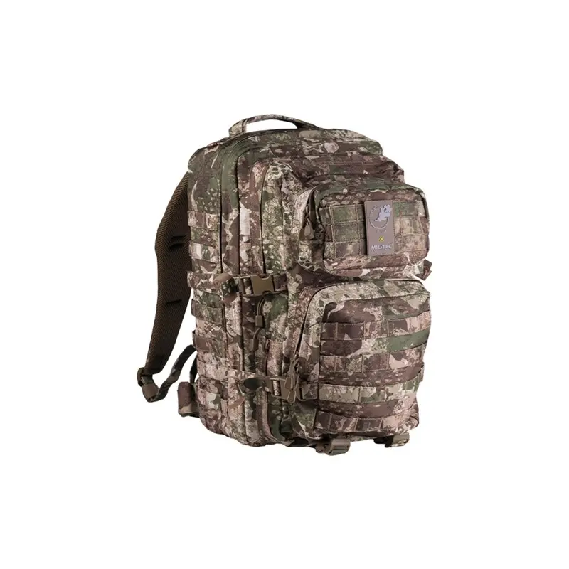 Тактический рюкзак объемом 36 л.. Изготовлен из прочного полиэстера, который дополнительно покрыт ПВХ-покрытием с внутренней стороны для защиты от влаги. Для перевозки основного снаряжения предусмотрено 2 больших отделения, змейки, закрывающиеся на двусторонние змейки. Внутри камер есть карманы меньшего размера, которые гарантируют эффективное управление переносимыми предметами. Другие аксессуары можно хранить в 2 передних карманах. Сверху есть панель на липучке, благодаря которой можно прикрепить нашивки и эмблемы. Нижний, высший карман оборудован органайзером для мелочей. Рюкзак также имеет карман на липучке для системы гидратации. Ленты, совместимые с системой MOLLE/PALS, расположены как спереди, так и по бокам рюкзака, что позволяет удобно крепить дополнительное снаряжение. Боковые компрессионные ремни позволяют отрегулировать рюкзак в соответствии с оборудованием, которое вы носите. Мягкие плечевые лямки и спинка рюкзака обеспечивают высокий комфорт пользователю даже при переноске большого количества снаряжения. Равномерное распределение веса улучшается благодаря регулируемому поясному ремню. WASP I - это инновационная линейка камуфляжей PHANTOMLEAF® CIV-TEC®, разработанная специально для MIL-TEC®. Шаблоны маскировки PHANTOMLEAF® создаются благодаря расширенному цифровому анализу изображения местности, в котором этот вариант должен обеспечивать маскировку. Применяемый алгоритм также учитывает движение и другие переменные, благодаря чему эти паттерны обладают хорошими адаптивными свойствами в широком диапазоне условий. При этом камуфляжи PHANTOMLEAF® настолько отличны, что гарантируют хорошую идентификацию "своих и незнакомых" в группе солдат на поле боя или во время игры в страйкбол. Вариант WASP I Z1B лучше всего работает в каменистых районах с низким растительным покровом, таких как тундра или части гор выше линии деревьев. Он также будет использоваться в городах и на промышленных объектах, где преобладают бетонные и стальные конструкции. Он также эффективен, когда местность частично покрыта снегом. Технические характеристики Камуфляж: Phantomleaf WASP I Z1B Материал: 100% полиэстер, ПВХ Наполнитель: пена EVA Размеры: 510 x 290 x 280 мм Вместимость: 36 л Вес: 1450 г