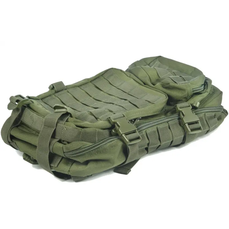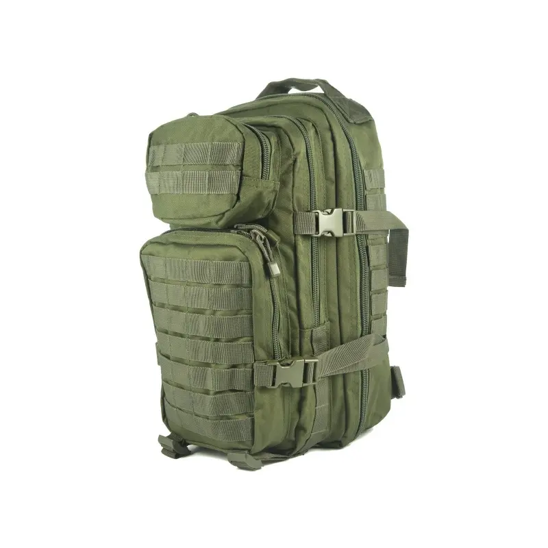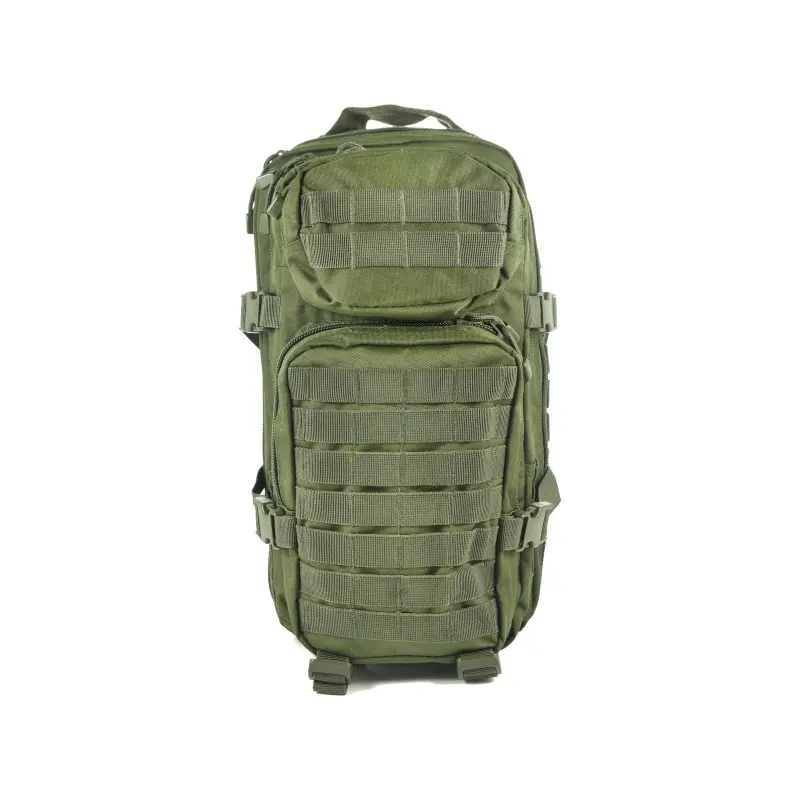 Данная модель тактического штурмового рюкзака ASSAULT "S" (20 литров) состоит из двух больших отделений с застежкой-молнией с различными сетчатыми внутренними карманами, двух маленьких передних карманов, а также встроенного кармана на липучке для гидросистемы. Все отделения закрываются на крепкие двухсторонние молнии. Эргономичные плечевые лямки шириной около 5 см, регулируются по длине. Кроме того, рюкзак оснащен плотной демпферной спинкой с вентиляционной системой и регулируемым поясным ремнем на застежке Fastex. Рюкзак имеет боковую регулировку по объему (в зависимости от загрузки рюкзака), а также стропы MOLLE на внешней стороне для навешивания дополнительных подсумков и D-образные кольца на плечевых лямках. Данная модель рюкзака имеет оптимальный объем для городских условий, легких прогулок на природе, рыбалки и охоты.