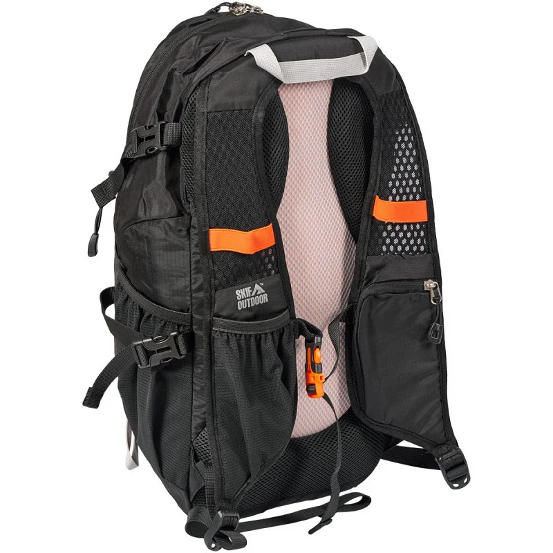 Рюкзак Skif Outdoor Racer має гнучку безкаркасну спинку з сітчастим покриттям і м'якими демпферними вставками, яка забезпечує свободу під час руху. Плечові лямки мають сітчасті вставки та оснащені нагрудною стяжкою на фастексі.