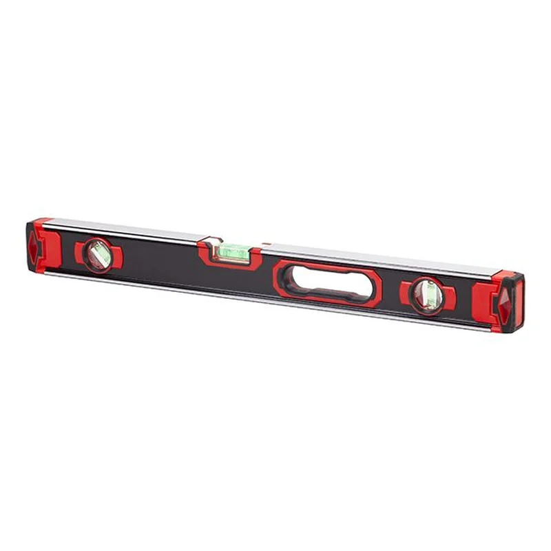 Точна роботаРівень оснащений трьома капсулами: двома вертикальними і однією горизонтальною, що дозволяє працювати у вертикальній і горизонтальній площинах. При цьому горизонтальна колба збільшена і має шість відміток для зручного зчитування показників під будь-яким кутом, а дві вертикальні колби дозволять не перевертати зайвий раз рівень під час вимірювань.