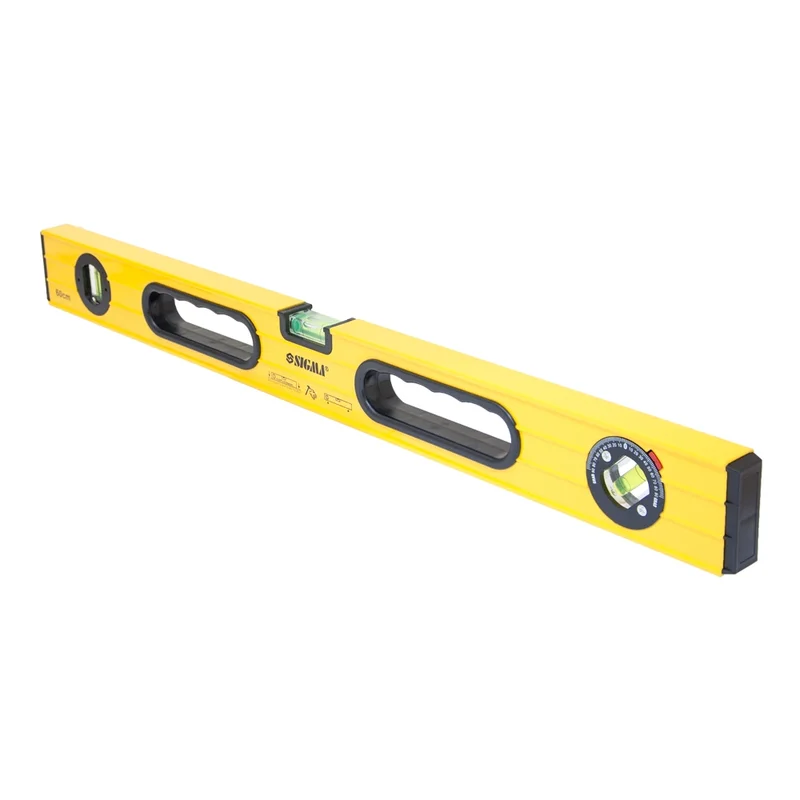Рівень з поворотною капсулою, 2 рукоятки 60см SIGMA (3723061) призначений для визначення горизонтального і вертикального розташування поверхонь, а також горизонтальності підлоги, балок і прогонів. Виготовлений з алюмінію, має лінійку і три ампули. Допустиме відхилення: 0.057 градуса (що при правильному розташуванні еквівалентно 1.0мм на 1м).