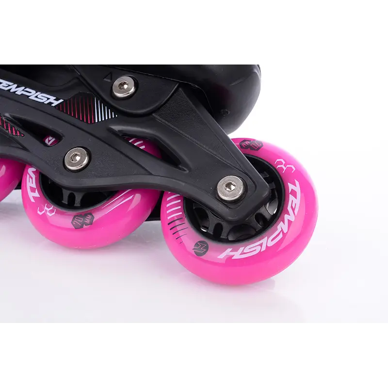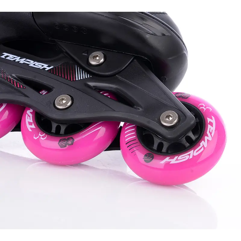 Установлены полиуретановые колеса Tempish Catch с высокой степенью сцепления и жесткостью 82A, диаметр 64 мм (для размера 29-32), 70 мм (для размеров 30-33 и 37-40). Колёса установлены на точных надежных подшипниках класса АВЕС 5 carbon steel, которые обеспечивают хороший накат и высокую скорость.