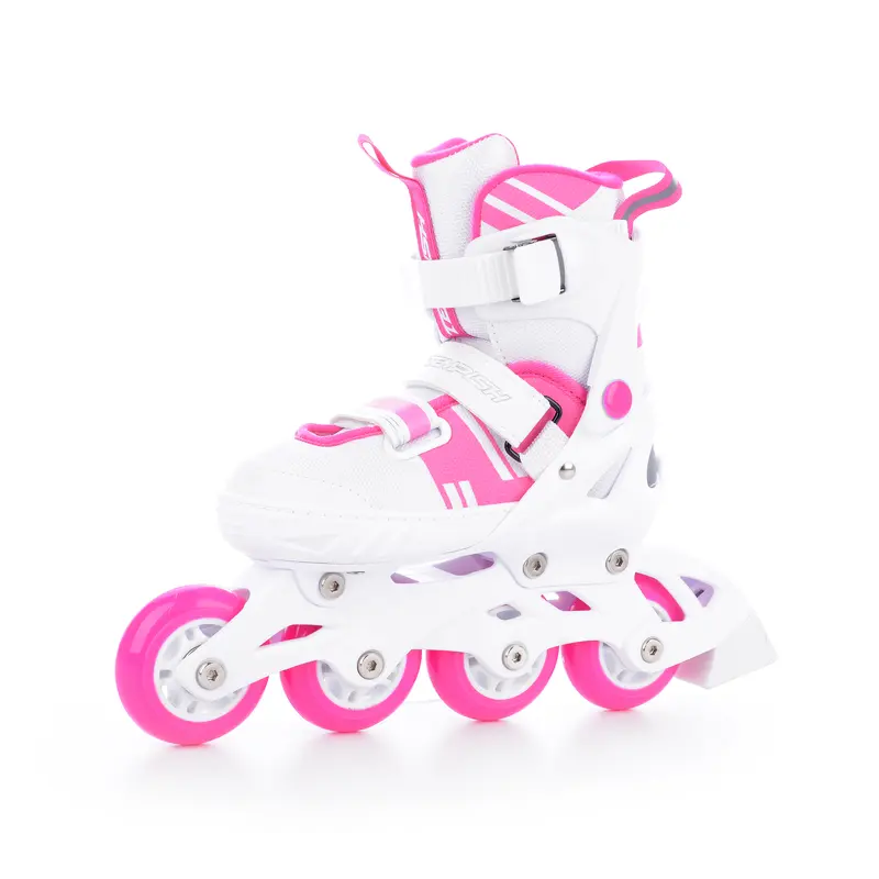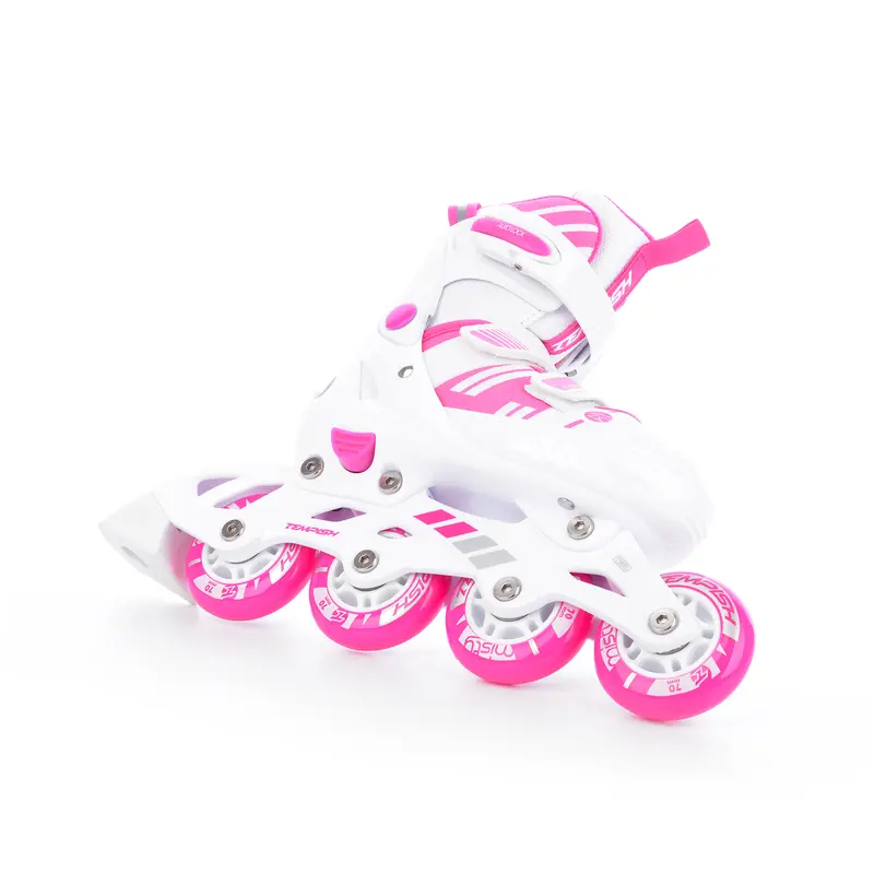 качественные детские роликовые коньки с раздвижным механизмом, позволяющим регулировать модель в пределах четырех значений размера. Каждый размер имеет колеса разного диаметра, ширина при этом остается неизменной и позволяет одинаково хорошо себя чувствовать на дорожном покрытии ребенку любого возраста.