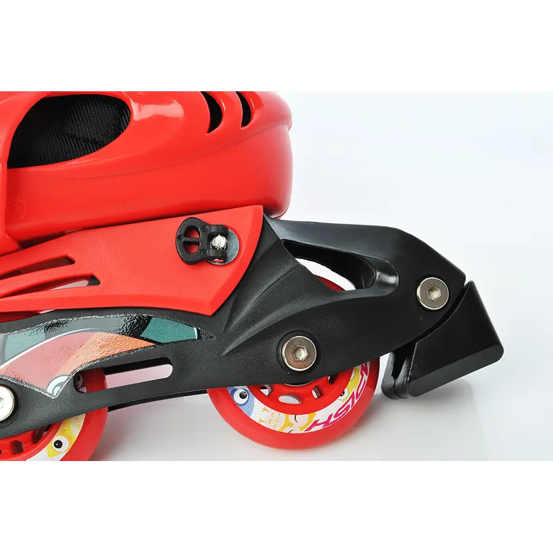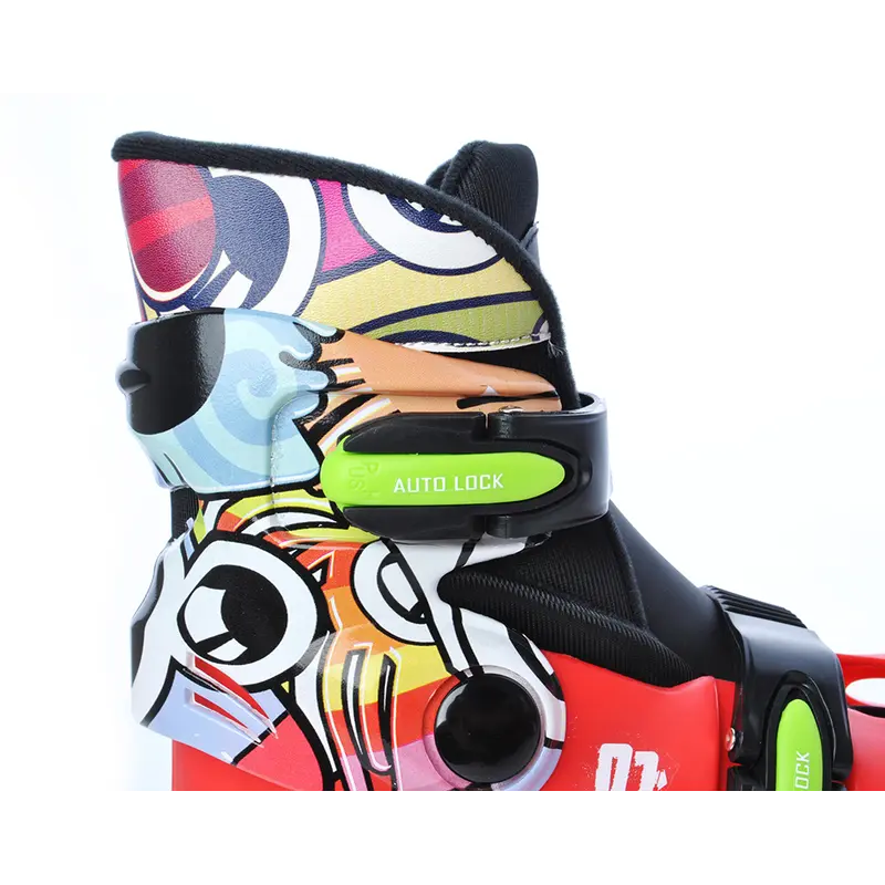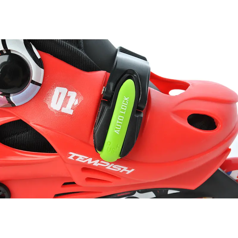 Раздвижной внешний ботинок из полипропилена и мягкого нейлона надежно удерживает и защищает ногу от повреждений и возможных ударов. Быстрая система с одной кнопкой позволяет быстро отрегулировать размер либо использовать коньки на вырост. Шнуровка ботинка укреплена ремешком-липучкой, а также двусторонней застежкой AUTO LOCK.