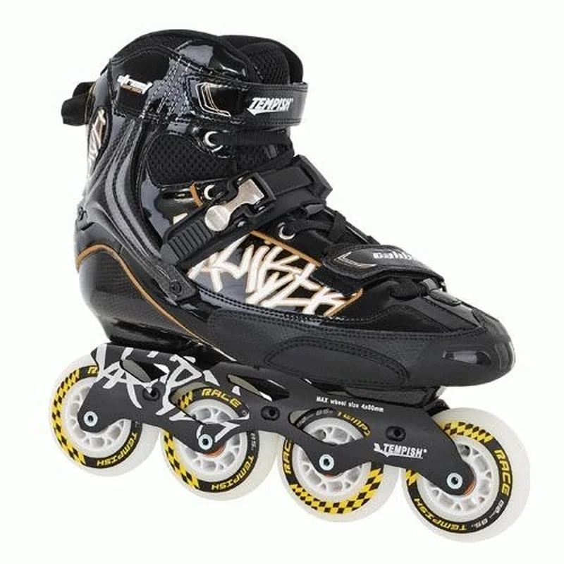 Tempish CALIBER - инлайновые унисекс роликовые коньки для фристайла, предназначены для топовых и профессиональных видов спорта, вольного и скоростного катания, занятия фитнесом, подходят для продвинутых и опытных райдеров. Корпус и шасси рассчитаны на высокие нагрузки во время экстремального катания.