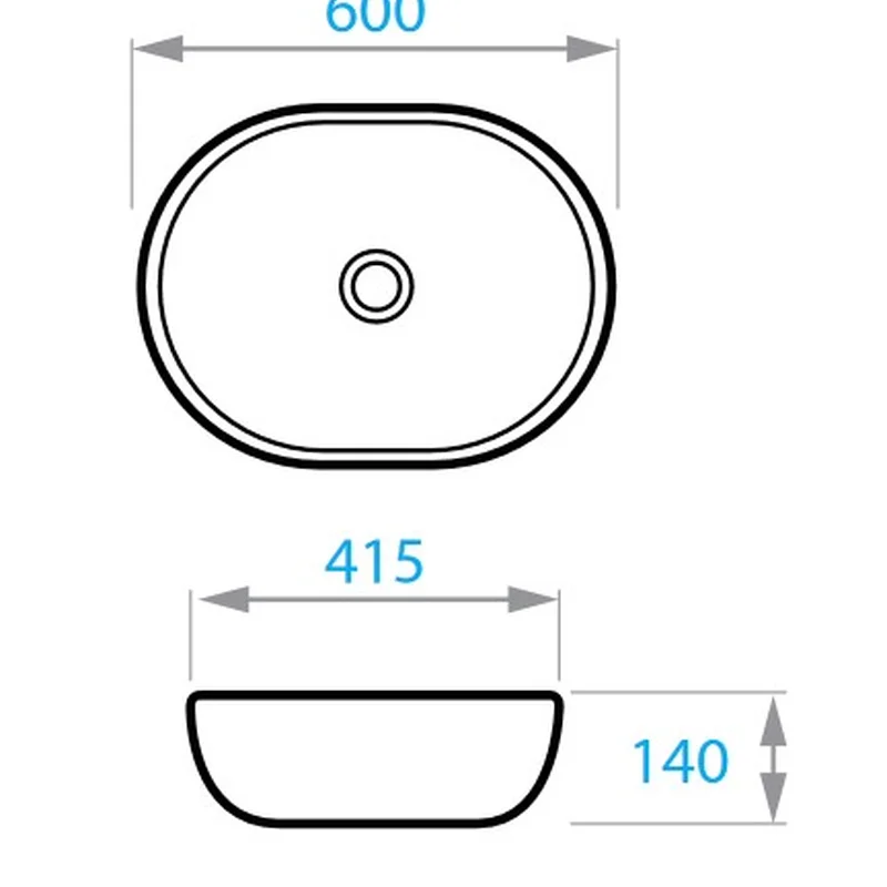 ROUND умивальник на стільницю 600х415 мм, чорний матовий