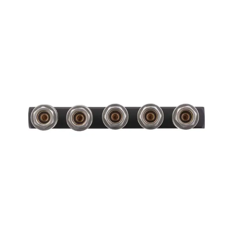 Прямий розгалужувач повітря дозволяє одночасно під'єднати 5 користувачів повітря і побудувати потужну пневматичну систему з тиском до 10 бар. На вході повітря встановлена різьба 1/4", а на виходах - надійні універсальні швидкороз'ємні з'єднання, які дозволяють легко підключити шланги високого тиску з пневмоінструментом.