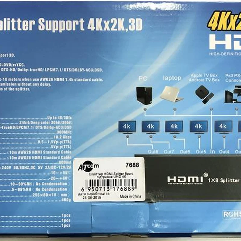 Розгалужувач (спліттер) Atcom (7688) HDMI 8 портів, підтримка UHD 4K