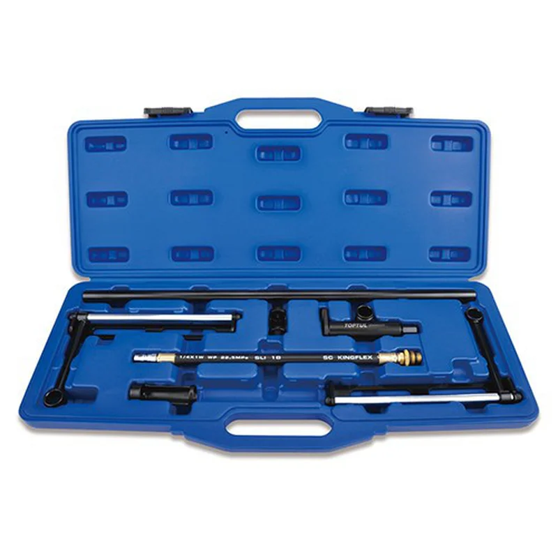 Рассухариватель клапанів універсальний TOPTUL JDAN0222 підходить для роботи з двигунами 12V, 16V, 20V, 24V автомобілів. Легкий у використанні, експлуатований бар виконаний з різьбою, для легкої фіксації на потрібному місці. Вбудовуваний кишеню штовхача клапана дозволяє витягувати замінний цанг клапана. У кейсі знаходиться повний набір інструментів для обслуговування, встановлення і зняття пружини клапана без зняття головки блоку циліндрів від двигуна.