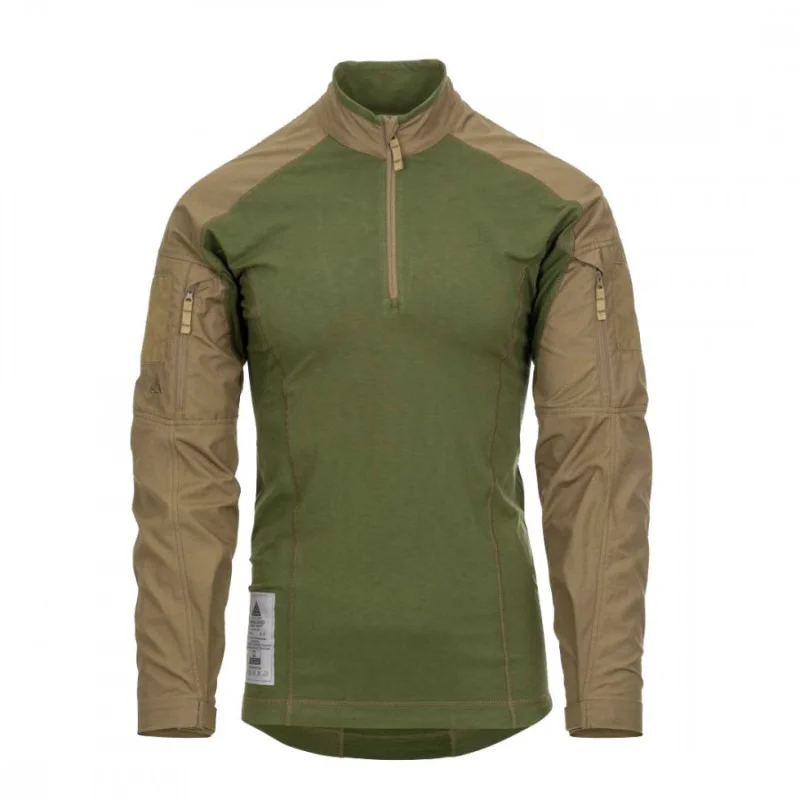 Direct Action VANGUARD COMBAT SHIRT® — бойова сорочка — один з важливих елементів одягу при виконанні найскладніших завдань. Високоякісні матеріали, використані для її пошиття, забезпечуватимуть комфорт, захист та належну свободу пересування.Торс VANGUARD COMBAT SHIRT виготовлений з тканини Polartec® PowerDry FR, яка, використовуючи власну двокомпонентну трикотажну конструкцію, де кожне волокно працює з максимальною ефективністю, швидко відводить зайву вологу від тіла. Крім того, унікальна суміш волокон тканини створює постійну вогнестійкість, (Flame Resistant) властивості якої, не піддаються хімічній обробці та ніколи не зношуються або слабшають. Будьте впевнені, тканина Polartec® PowerDry FR не буде тліти, створюючи опіки на тілі, при впливі сильної спеки або полум'я.Комір-стійка та рукава реглан VANGUARD COMBAT виготовлені з міцної, дихаючої тканини NYCO. Зона ліктів посилена матеріалом Cordura® 500D та має кишені для демпферних вставок. Кишені на рукавах мають зручний, легкий доступ та надійно закриваються блискавками. Липучки на кишенях призначені для емблем та знаків персоналізації.Особливості: