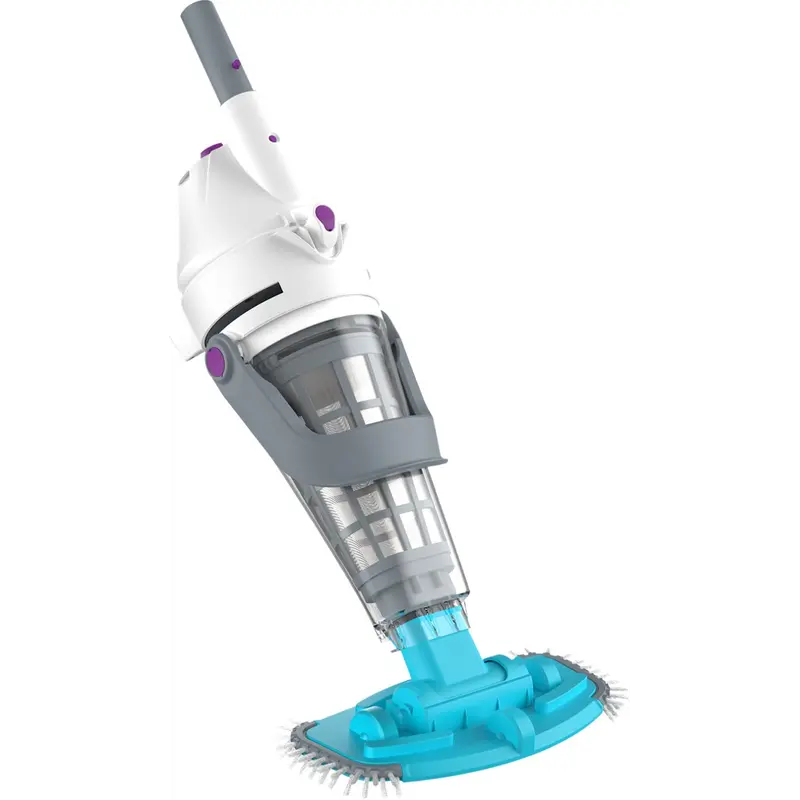 Пилосос оснащений сталевим фільтром-конусом об’ємом 1.22 л, що дозволяє збирати більше сміття за один цикл роботи. Поворотна всмоктувальна головка з бічними щітками та колесами легко переміщується по дну та стінках басейну. Система швидкого відкриття дає змогу очищати контейнер одним рухом.