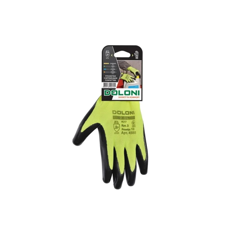 Рукавиці трикотажні з нітриловим покриттям Doloni D-OIL (10" / XL, жовті) (4588)