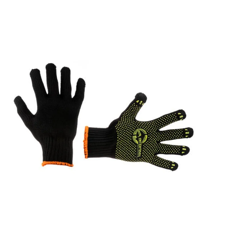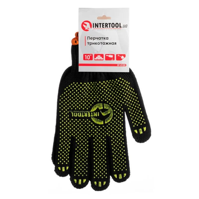 Рукавичка трикотажна 60% бавовна / 40% поліестер, з ПВХ крапкою, клас в'язки 7, колір чорний, з платуванням, жовта крапка, 90 гр INTERTOOL SP-0125