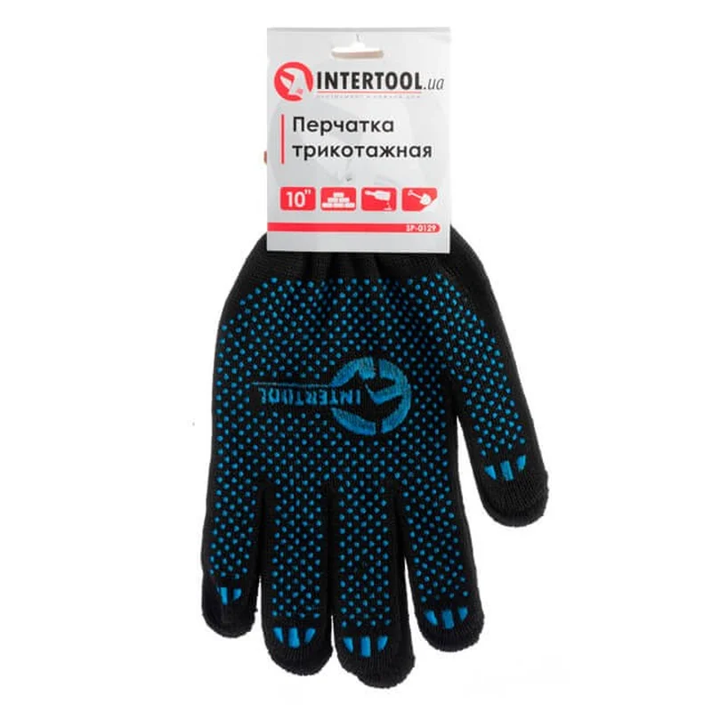 Рукавичка трикотажна 70% бавовна / 30% поліестер, з ПВХ крапкою, клас в'язки 10, колір чорний, синя крапка, 55 гр INTERTOOL SP-0129