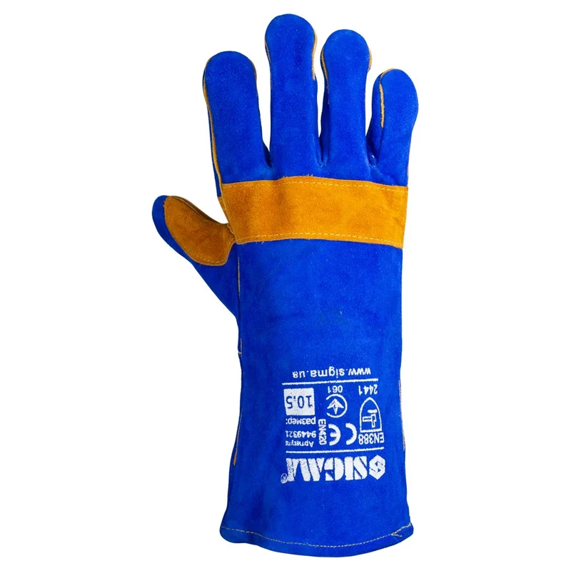 Рукавички краги зварника р10.5, клас А, довжина 35см (синьо-жовті) SIGMA (9449321)
