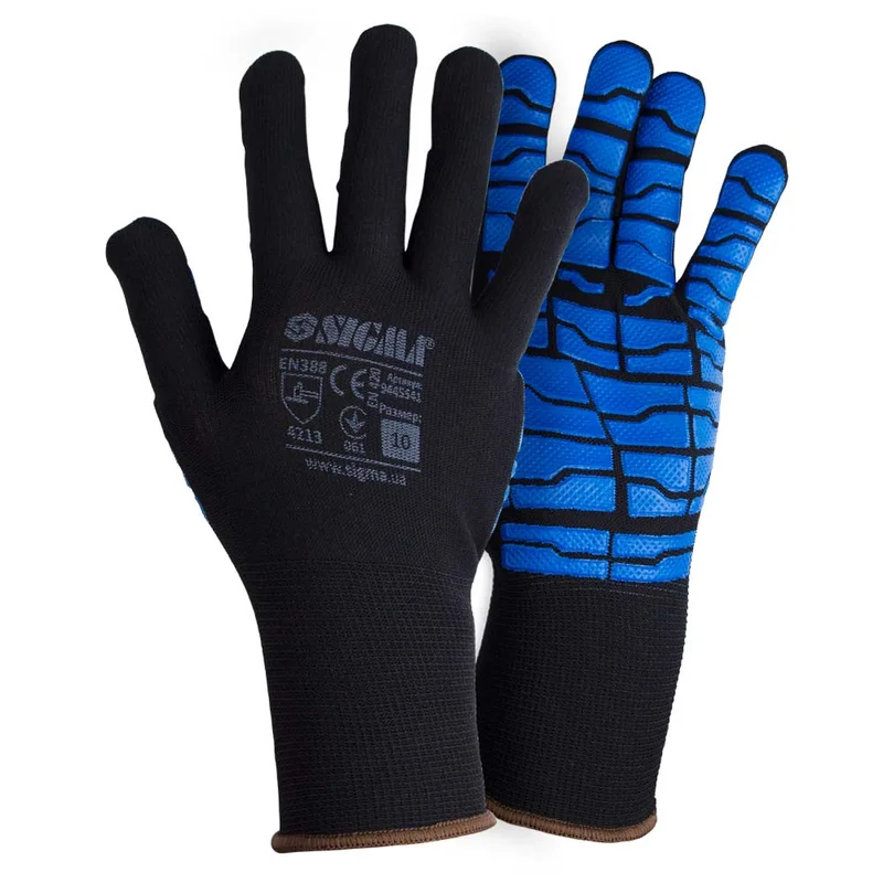 Рукавички трикотажні з латексним покриттям (павутина на долоні) р10 (сині манжет) Sigma (9445541) призначені для захисту від механічних впливів, жиру і масла. Застосовується для складських, сільськогосподарських, складальних робіт, в автосервісі, механічних, будівельних роботах.