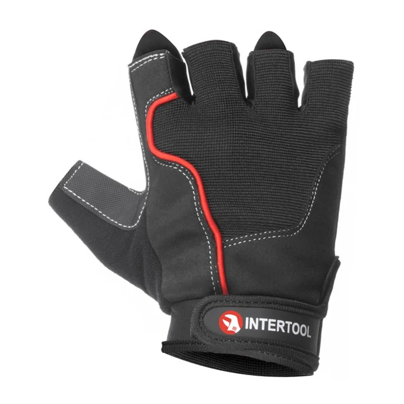 Рукавички без пальців INTERTOOL SP-0145 виготовлені з високоякісної екошкіри із захисними вставками на долоні та зі вставками з спандекса і неопрену на тильній стороні. Дана модель багатоцільова і може використовуватися як для виконання монтажних робіт, як водійські рукавички для авто-, мото- або велотехніки. Також знадобляться для різних видів спорту: важкої атлетики, паверліфтингу, бодибілдингу та інших силових тренувань. У воєнний час можуть використовуватися у якості тактичних рукавичок.