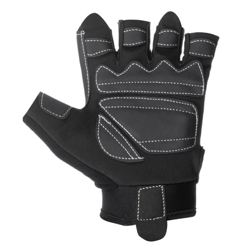 Тильна частина долоні має вставки зі спандуксу та неопрену, високотехнологічних матеріалів, які дозволили зробити одночасно міцні та комфортні рукавички, що не сковують рухів. Рукавиці без пальців максимально зручні при роботі з дрібними предметами. Ремінець на липучці щільно фіксує їх, не дозволяючи зісковзувати з долонь.