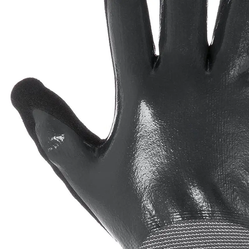 Повне покриття рукавичок гладким нітрилом та покриття долоні пористим нітрилом для більш стійкого захисту. Забезпечуються також протиковзні властивості та висока зносостійкість. Не пропускають мастила та бензин, якими можуть бути покриті деталі машин та механізмів. При цьому рукавички дуже еластичні та не сковують рухів пальців. Стійкі до стирання та мають тривалий термін експлуатації.