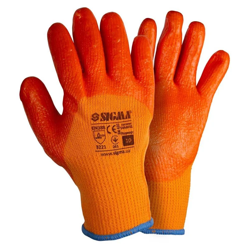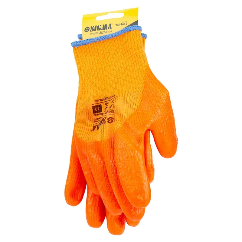 Рукавички трикотажні з частковим ПВХ покриттям утеплені р10 (помаранч, манжет) SIGMA (9444441) призначені для захисту від механічних впливів, загальновиробничих і нетоксичних рідких забруднень і захисту від холоду. Застосовуються при будівельних і транспортно-складських роботах, в побуті і господарстві.